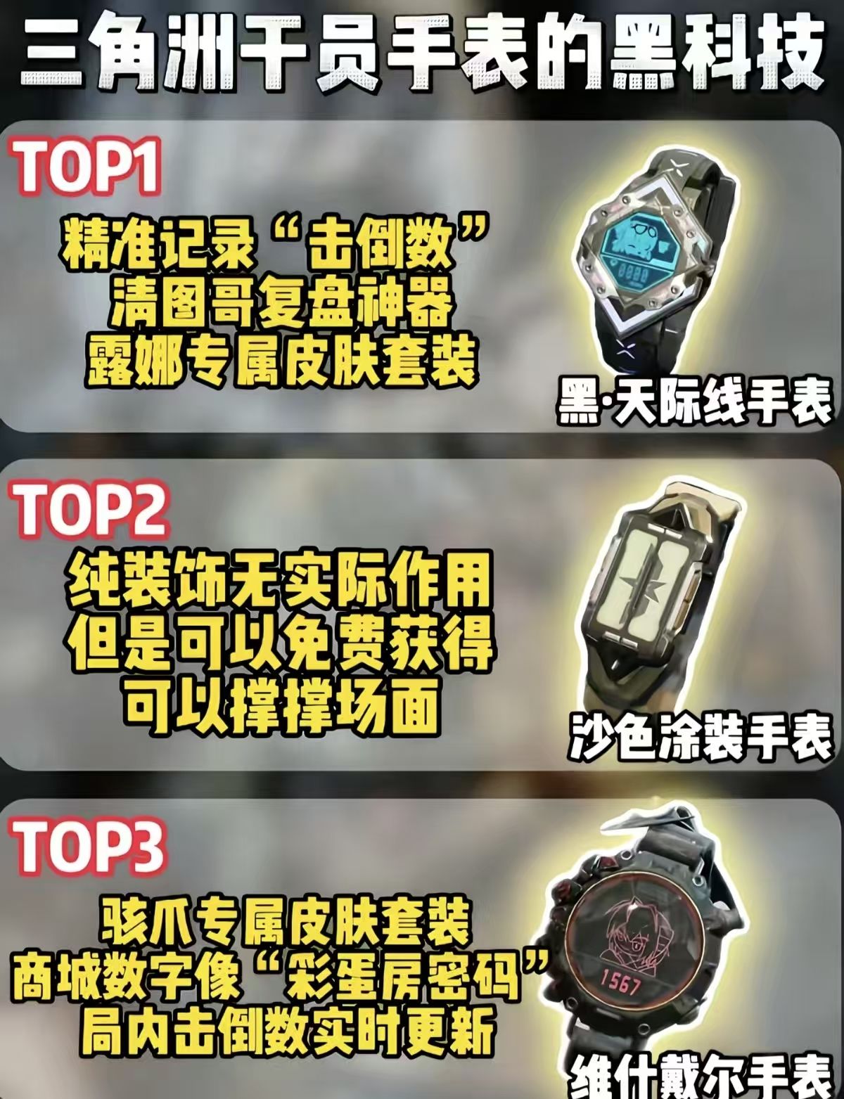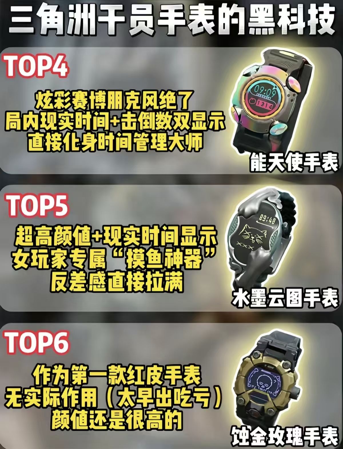 总而言之,在三角洲行动中,手表的选择早已超越了“好看与否”的简单维度。无论是功能拉满的天花板装备,还是主打个性的装饰单品,每一款都在为不同玩法风格的玩家提供着独特助力。选对适合自己的那款,既能在对局中提升效率、掌控节奏,也能在外设搭配中彰显个人风格,让你的战场体验更加完整、出彩。