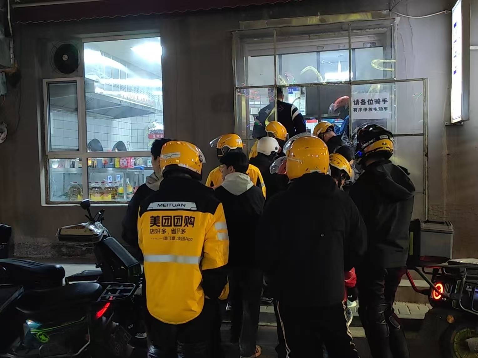骑手在排队购买“一元晚餐”。新华社记者 许雄 摄骑手拍了视频